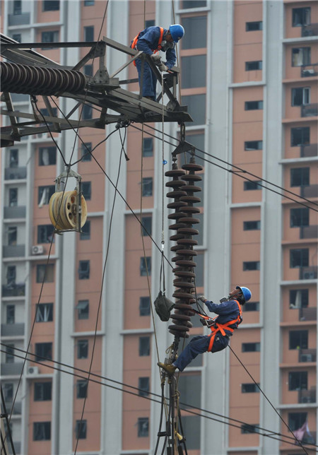 启航嘉园 海港城 由中建六局开始进行全面维修工作,共2000多名工人进入小区开始清整。图为工人在全面维修住宅。