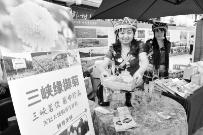 “三峡缘”御菊在第五届中国三峡(夷陵)茶文化艺术节上展示。 本报记者张建堂摄