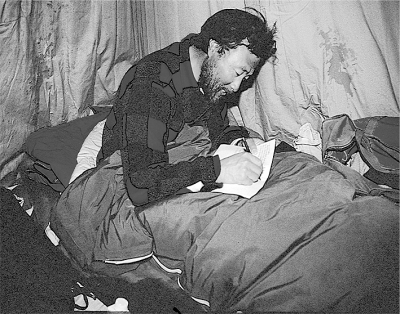 位梦华在野外帐篷里撰写南极考察日记