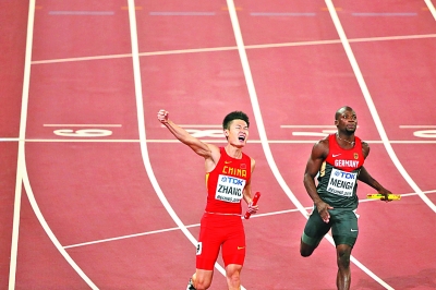 本报北京8月29日电(记者侯珂珂、王东)在29日晚结束的北京田径世锦赛男子4×100米接力决赛中,由莫有雪、谢震业、苏炳添、张培萌组成的中国队跑出38秒01的成绩,获得银牌,这也是亚洲队伍在历届田径世锦赛中首次登上该项目领奖台。牙买加队以37秒36夺得冠军,加拿大队排名第三。尽管美国队第二个冲过终点,但是因为在比赛中犯规被取消成绩。(相关报道见4版)