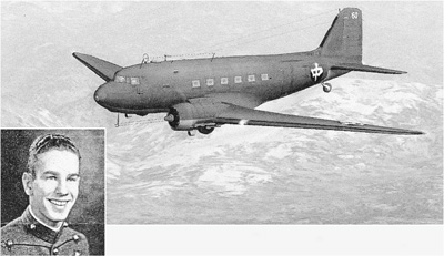 图为詹姆斯·布朗和他飞越“驼峰航线”时驾驶的飞机(图画)。