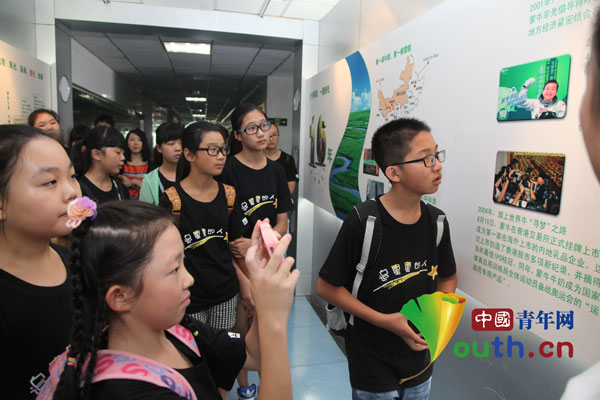 TFboys粉丝团参观工厂听讲解员讲解。 中国青年网记者 李拓 摄