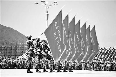 纪念大会升旗仪式护卫方队的队员在训练中 供图/新华
