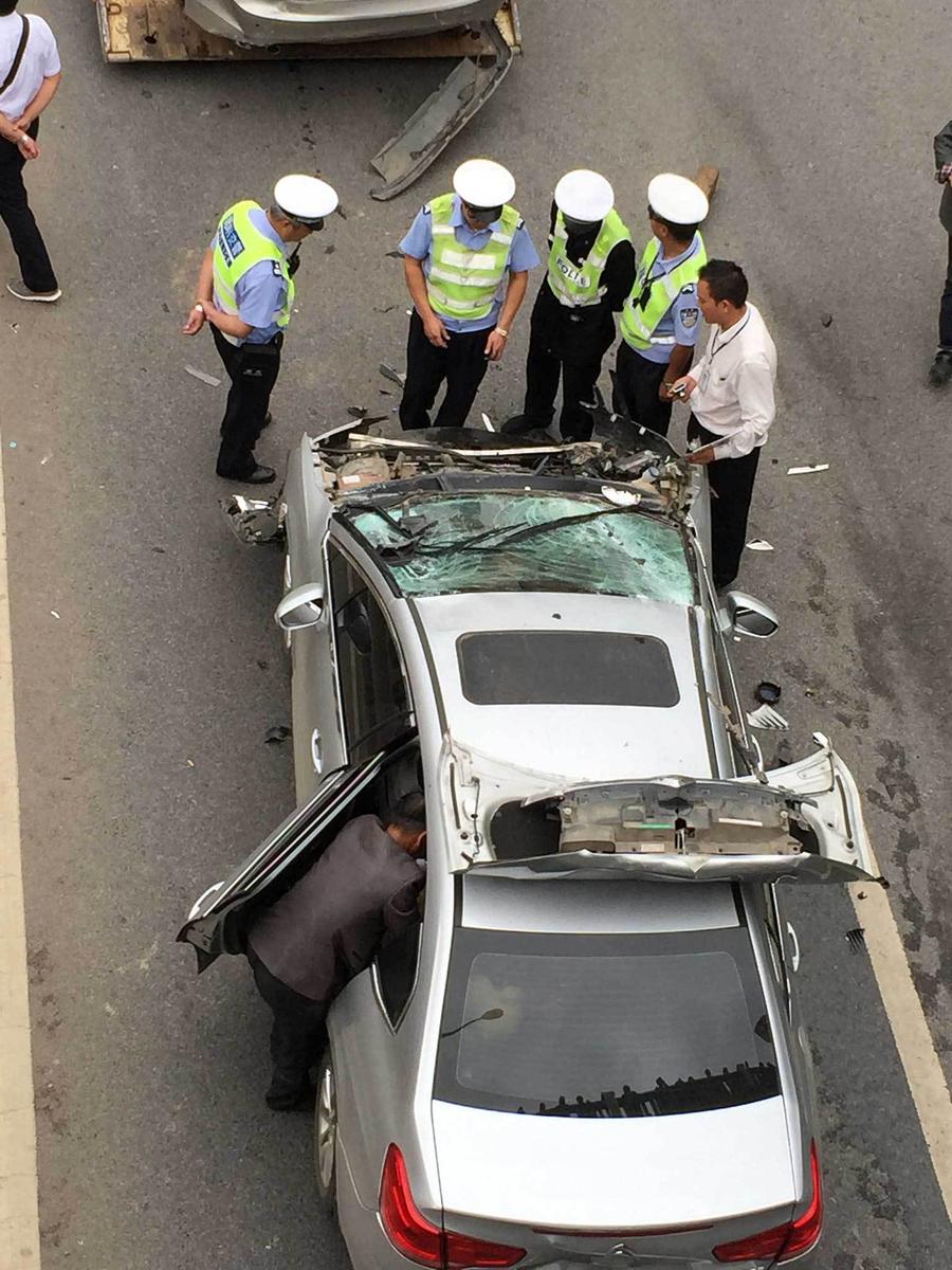 昆明发生离奇车祸 两车追尾前车被铲起