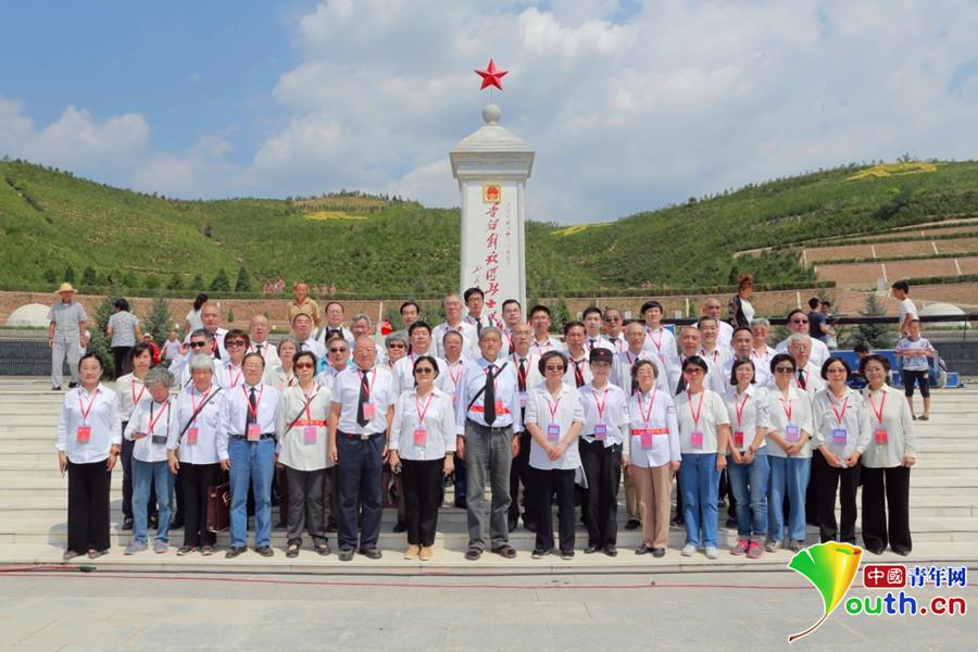 120师后代、晋绥儿女后代共同在烈士纪念碑前合影。中国青年网通讯员 李宝成摄