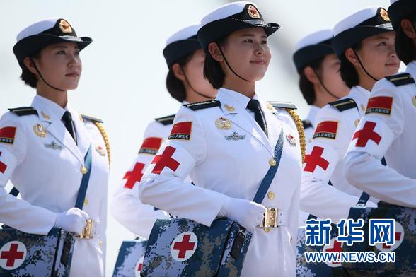 威武雄壮的三军仪仗队里,51名身着礼服、首次亮相的女仪仗队员,英姿飒爽;唯一的女兵方队、白求恩医疗方队中,200多名肩背药箱、臂戴红十字袖章的女队员,傲然挺立;高远的天空上,八一飞行表演队两名歼击机女飞行员驾驶战鹰,呼啸苍穹……