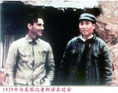 毛泽东与斯诺。资料图片