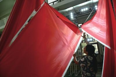 为确保“衣服”的垂感,他们在旗子的下方放置了一个铁砣。“这样,旗子就不会随风乱摆,始终保持垂直面,以最佳的姿态接受检阅。”陶炳兰说。