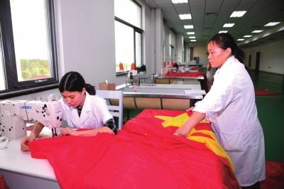 为了找到合适的材质,他们选取了10多种材料,一次次实验、检测,最终采用了与神舟飞船降落伞一样的特制布料,制作国旗和军旗。