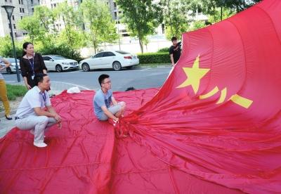 陶炳兰介绍,最终他们根据直升机大小和飞行高度科学确定了旗子的尺寸。“这样两者在空中显得浑然一体”。