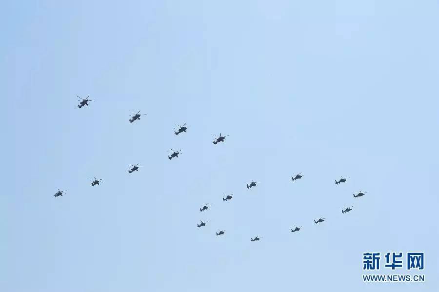 9月3日,中国人民抗日战争暨世界反法西斯战争胜利70周年纪念大会在北京隆重举行。这是20架直升机在空中组成“70”字样通过天安门广场。新华社记者 黄孝邦 摄