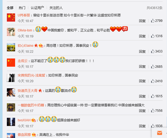 网友“噢蕾咿噢蕾咿噢蕾”:戳中泪点,总理,如你所愿!祖国强大了!