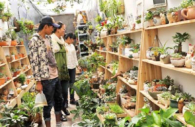 图为两名藏族顾客光顾邓文娟的“树妖姑娘”花店(8月24日摄)。一间两米宽、不到20平方米的店面,蜡牡丹、吉娃莲等植物一层层排列着,屋子里挤满了顾客。这是记者在拉萨市一家名为“树妖姑娘”的花店看到的场景。 新华社记者张汝锋 摄