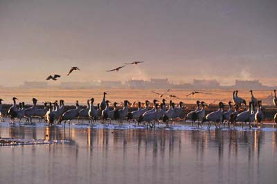 一群黑颈鹤在西藏拉萨林周县黑颈鹤自然保护区内栖息(2014年12月7日摄)。近年来,西藏不断加大保护黑颈鹤栖息地的力度,黑颈鹤生存环境得到有效改善,每年都有大批黑颈鹤飞回西藏中、南部河谷地带过冬。新华社记者刘坤摄