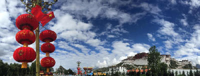 图为9月5日,国旗和大红灯笼将布达拉宫广场装扮得格外漂亮。连日来,拉萨大街小巷充满了节日气氛,西藏各地举办了一系列庆祝活动,展示50年来西藏人民在中国共产党领导下取得的辉煌成就,庆祝西藏自治区成立50周年。 1965年9月1日,西藏自治区正式成立。 新华社记者 庞兴雷 摄