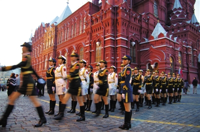 当地时间9月4日,俄罗斯莫斯科红场上进行了“建城868年”庆祝活动-军乐节的最后一次彩排表演。中国人民解放军三军仪仗队女兵亮相军乐节,这是三军仪仗队女兵首次海外亮相。图/IC