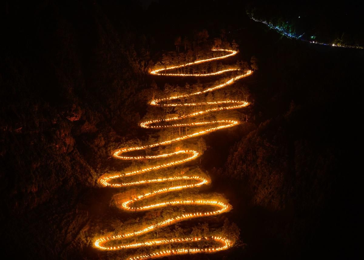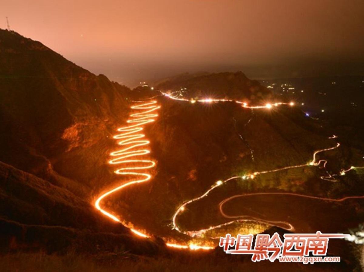 贵州2974人持火炬徒步抗战公路晴隆24道拐