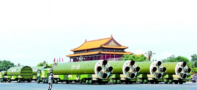 9月3日,核导弹第二方队接受检阅。新华社记者 潘旭摄