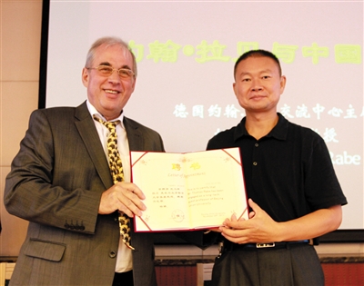 在报告会之前,校党委副书记周志成教授向托马斯·拉贝教授颁发了北京联合大学客座教授聘书。
