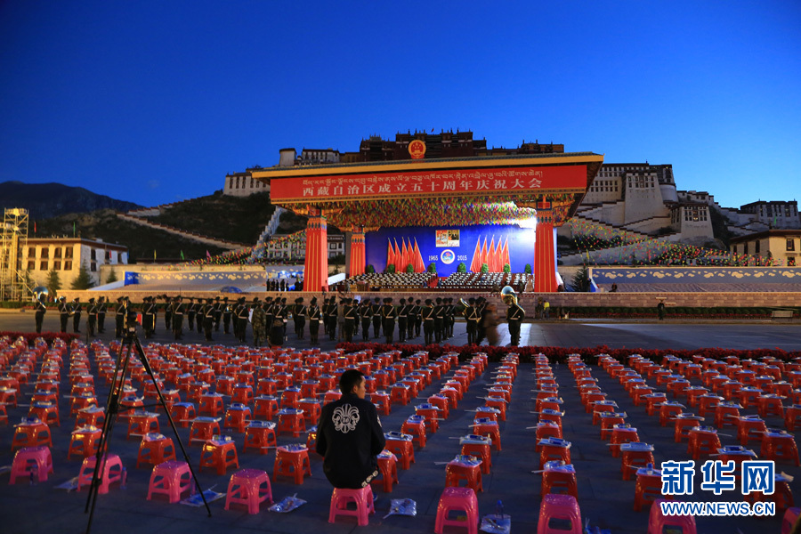 今年是西藏自治区成立50周年。9月8日上午10时,西藏自治区成立50周年庆祝大会在拉萨市布达拉宫广场举行。图为当日清晨布达拉宫广场景象。新华网 邢兵帅 摄