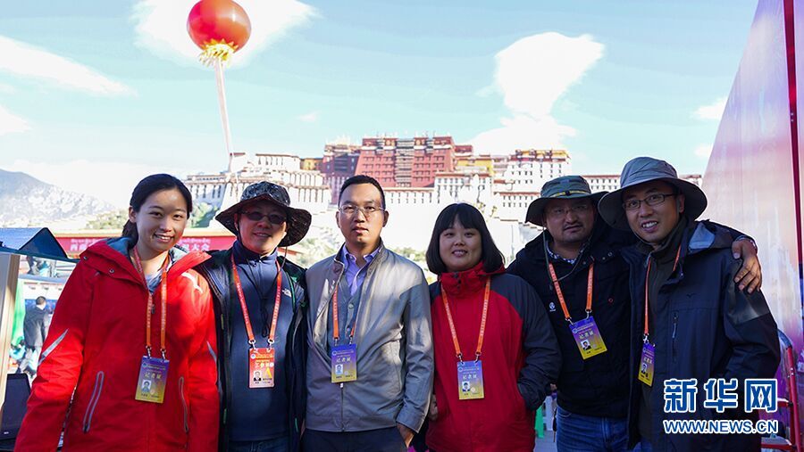 今年是西藏自治区成立50周年。9月8日上午10时,西藏自治区成立50周年庆祝大会在拉萨市布达拉宫广场举行。图为新华网部分直播报道人员在工作现场。新华网 杨三军 摄