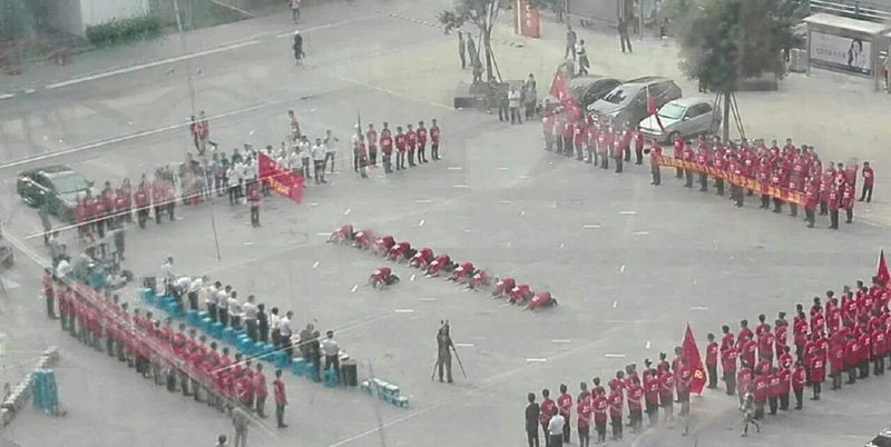 9月9日,沈阳铁西建设大路与爱工街路口广场,一火锅店的员工跪地磕头,高喊“感谢X总,给我工作!” 引起围观市民反感、愤怒。