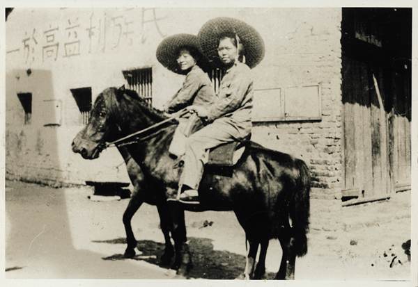 资料图片:1938年秋,雷洁琼(左)在江西农村发动妇女,宣传抗日救国