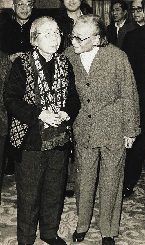 资料图片:1988年3月,全国政协常委会闭幕后雷洁琼与邓颖超同志合影