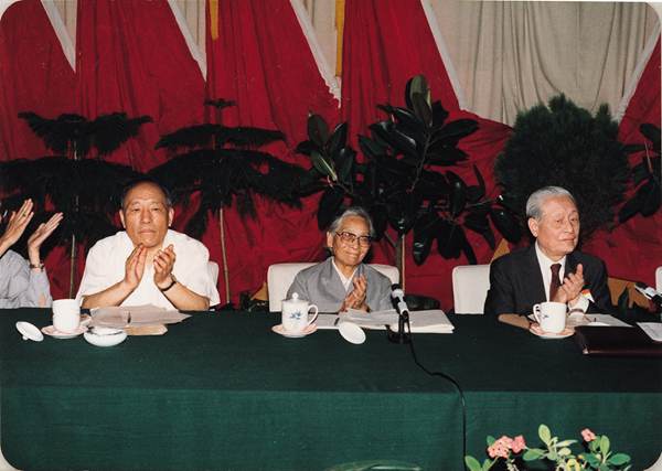 资料图片:1987年6月,在民进七届五中全会上,雷洁琼当选民进中央主席