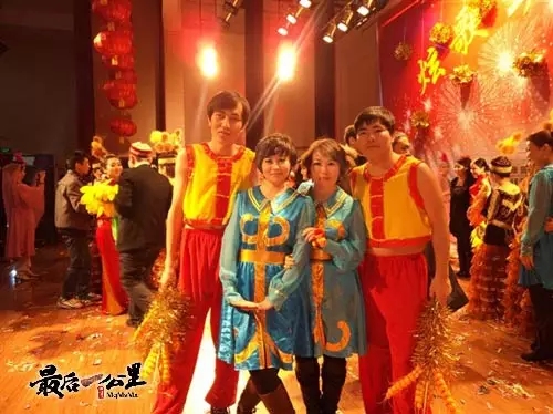 乌仁图雅(右一)在主持和什托洛盖镇春节联欢晚会
