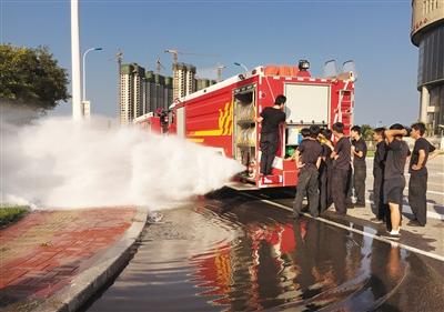 2015年9月7日,天津港消防第五大队,新到岗的消防员们正在训练。