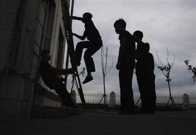 2015年9月10日,天津港消防第五大队,消防员们正在训练爬高梯。