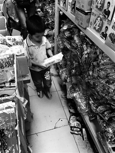 另外几家店铺内,辣条一样“上不了台面”,货架的底层几乎都成了五毛食品的专属阵地。“这种五毛钱的辣条供货不是很固定,因为都说这是垃圾食品,规定不让卖,所以有的时候查得严就没法卖了,查得不严他们就来送货。”距离一六五中学不足100米的利顺福超市的店主说,“但孩子都爱吃,卖得很好。”