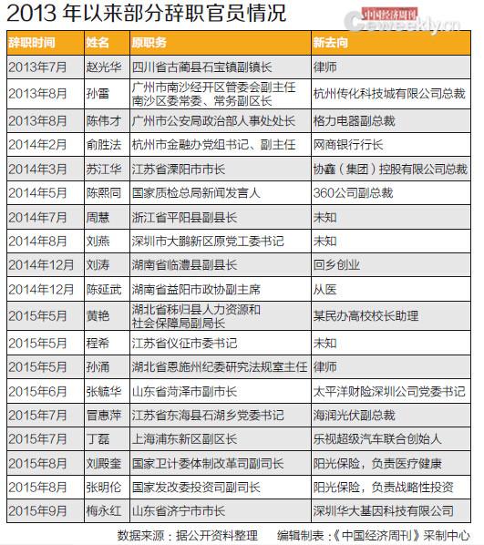 有媒体说,这是始于2013年的新一轮官员辞职下海新浪潮。
