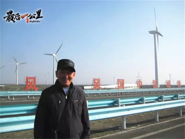 煤改气工程实施之后,陈治庭在达坂城风力发电站留影