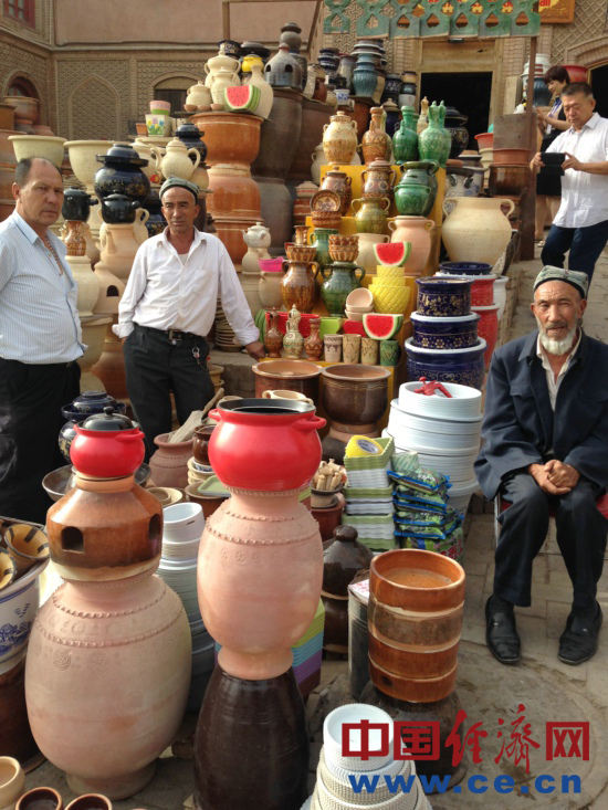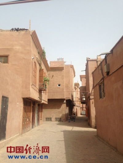 现年50岁的买买提?依明是一个土陶巴扎经营者,说起这座老城的变化,他感慨万千:“你们猜猜这个房子有多少年了”,记者们表示不知道,“300年了,我们家在这5代人哩”,买买提?依明说,原来的房子很小,巷子也很窄,家里开了个旅舍,人多的时候还要打地铺,生意也不好。后来房屋改造,在自家原址上盖了新房,全家人高兴得不得了,自己花了15万装修,整修一新的房屋让旅舍又红红火火的开了起来,大儿子大学毕业后已经回来帮忙,小儿子还在重庆读大学。依明说,当初改造的时候政府让我们选择,可以搬出去住楼房,也可以留在这,街坊邻居们很少有搬走的,现在我周围还是那些老朋友。说起自己觉得装修贵不贵,依明说:“政府花了那么多钱给我们盖房子,我们自己花一点也是应该的,感谢政府给我们这么好的生活。”