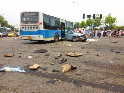 6月20日,江苏南京,马自达被宝马撞成两截。图/东方IC