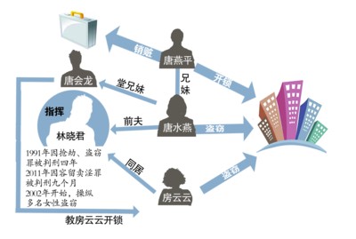 在这个犯罪团伙里,房云云和唐水燕既是犯罪嫌疑人,也是受害者。 2013年底,19岁的房云云经唐水燕介绍,与43岁的林晓君相识,不久同居,随后,林晓君找人教房云云开锁技术。