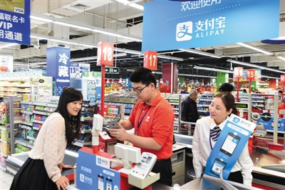 收银员可以用手机扫描顾客的支付宝二维码收款。