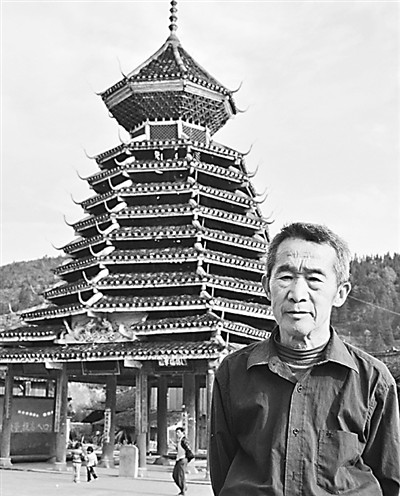 鼓楼是侗族典型的文化符号之一,整个建筑只凭着一根丈杆、一把直尺、一个墨斗盒,就将成百上千错综复杂的木梁、柱、椽、枋、板等材料不用一钉一铆衔接起来,其工艺堪称一绝。2006年,侗族木构建筑营造技艺被列入我国首批国家级非物质文化遗产名录,陆文礼也于2007年获得首批“中国民间文化杰出传承人”荣誉。