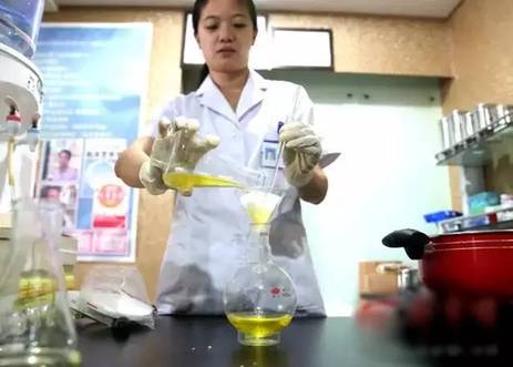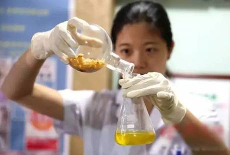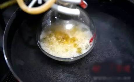 实验开始30分钟后,圆底烧瓶中的石油醚由原来的无色透明变为了黄色,这说明月饼中的油脂已被提取出来。接下来进行油脂分离。