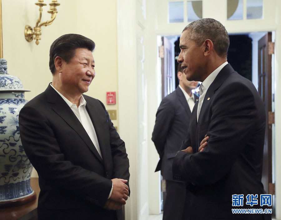 9月24日晚,国家主席习近平应美国总统奥巴马邀请来到白宫。奥巴马在门前热情迎接。然后,两国元首沿宾夕法尼亚大街一同步行前往布莱尔国宾馆举行会晤。新华社记者兰红光摄