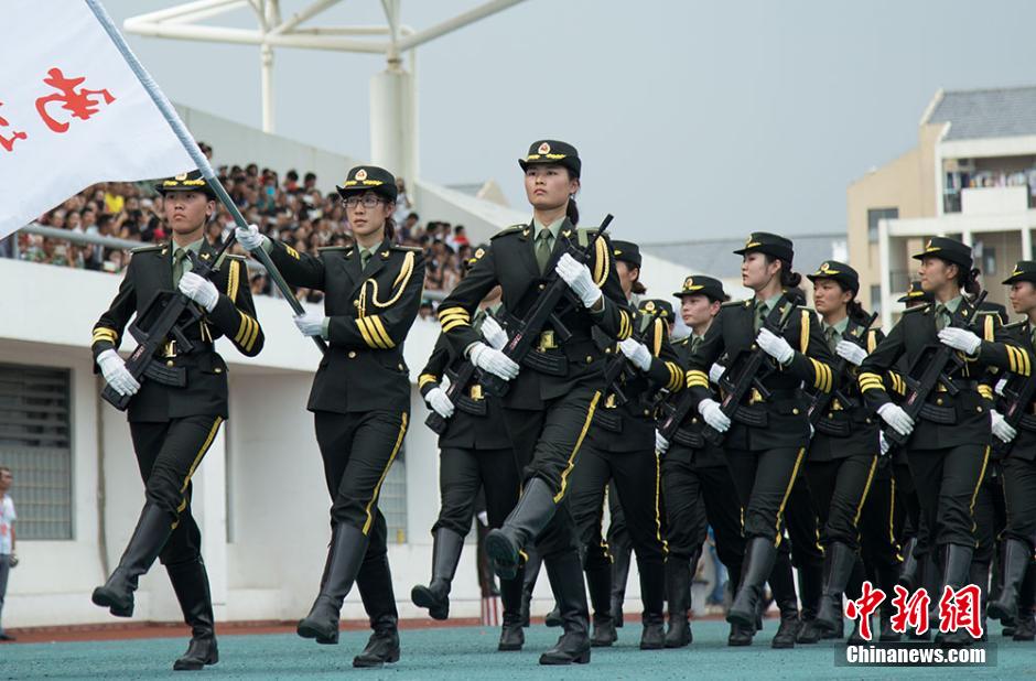9月25日,为纪念抗日战争暨世界反法西斯战争胜利70周年,江苏省普通高等学校国旗班比武表彰大会在中国药科大学江宁校区举行,来自中国药科大学、东南大学、南京晓庄学院等高校国旗班表演方队以及中国药科大学2000名大学生参加,分列式后,中国药科大学女子军体拳、金陵科技学院男子长棍术、南京晓庄学院女子匕首操、中国药科大学战术等军训课目表演依次出场,尽情展现当代大学生们的风采。姜晨 摄