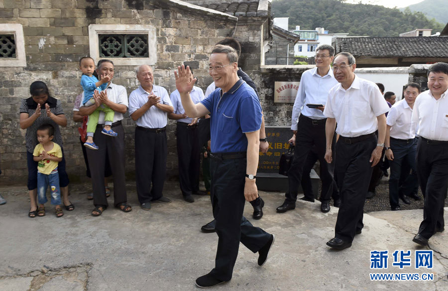 9月24日至26日,中共中央政治局常委、中央纪委书记王岐山在福建调研。这是9月24日,王岐山在连城县红四军革命旧址参观时,向附近的村民挥手致意。新华社记者张铎摄
