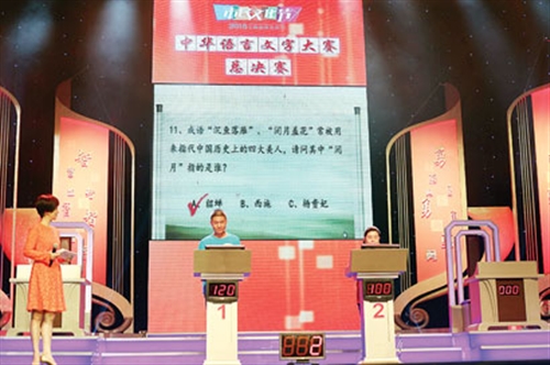 选手在中华语言文字大赛总决赛现场答题。 本报记者 叶辰亮摄
