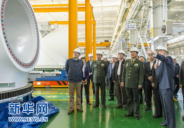 9月27日,中央军委委员、总后勤部部长、中央代表团副团长赵克石率中央代表团五分团在新疆巴音郭楞蒙古自治州、哈密地区看望慰问当地各族干部群众。这是赵克石在哈密视察金风风电设备有限公司。新华社记者 江文耀 摄