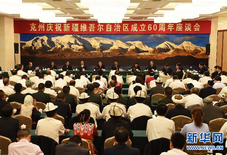 俞正声还接见了克州有关负责同志、各界人士代表、援疆干部代表,同大家合影留念,并出席了克州庆祝新疆维吾尔自治区成立60周年座谈会。