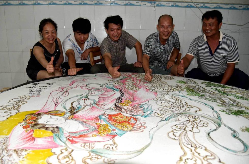 广西8名民间工匠制作直径2米手绘“白月饼”