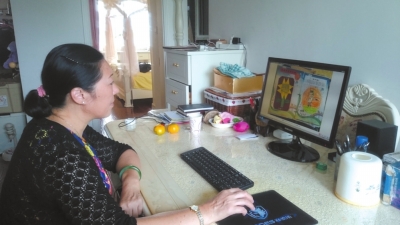 李征琴在家中查看照片。京华时报记者张淑玲摄