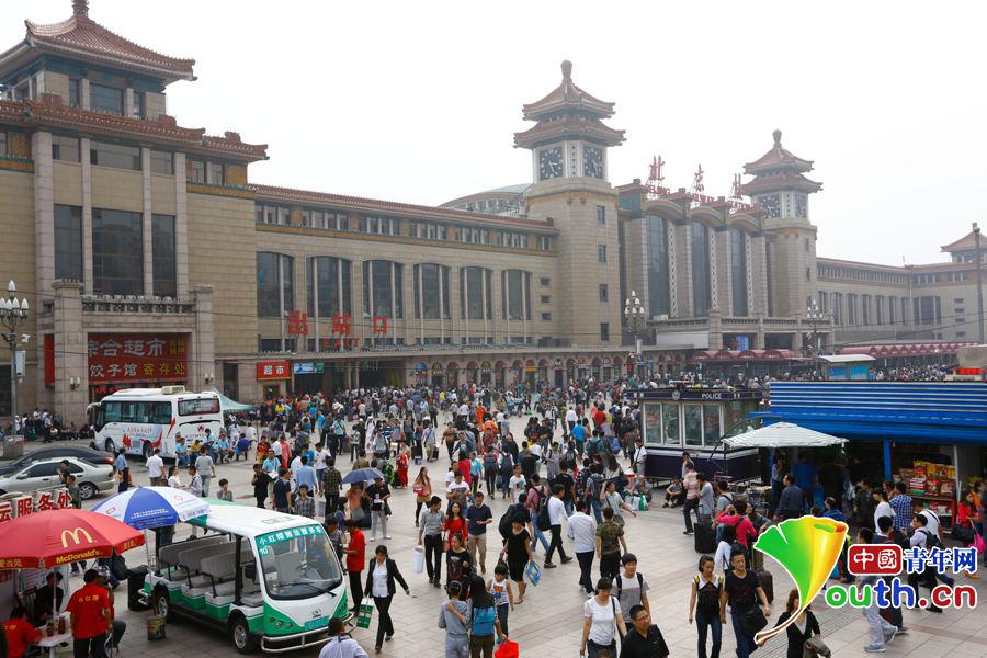 北京站大批旅客等候进站。 中国青年网记者 张炎良 摄